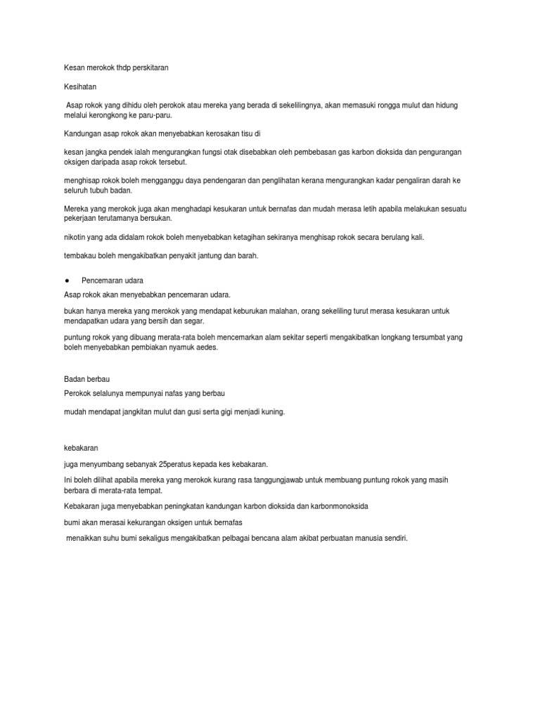 Kesan Merokok Terhadap Persekitaran Pdf